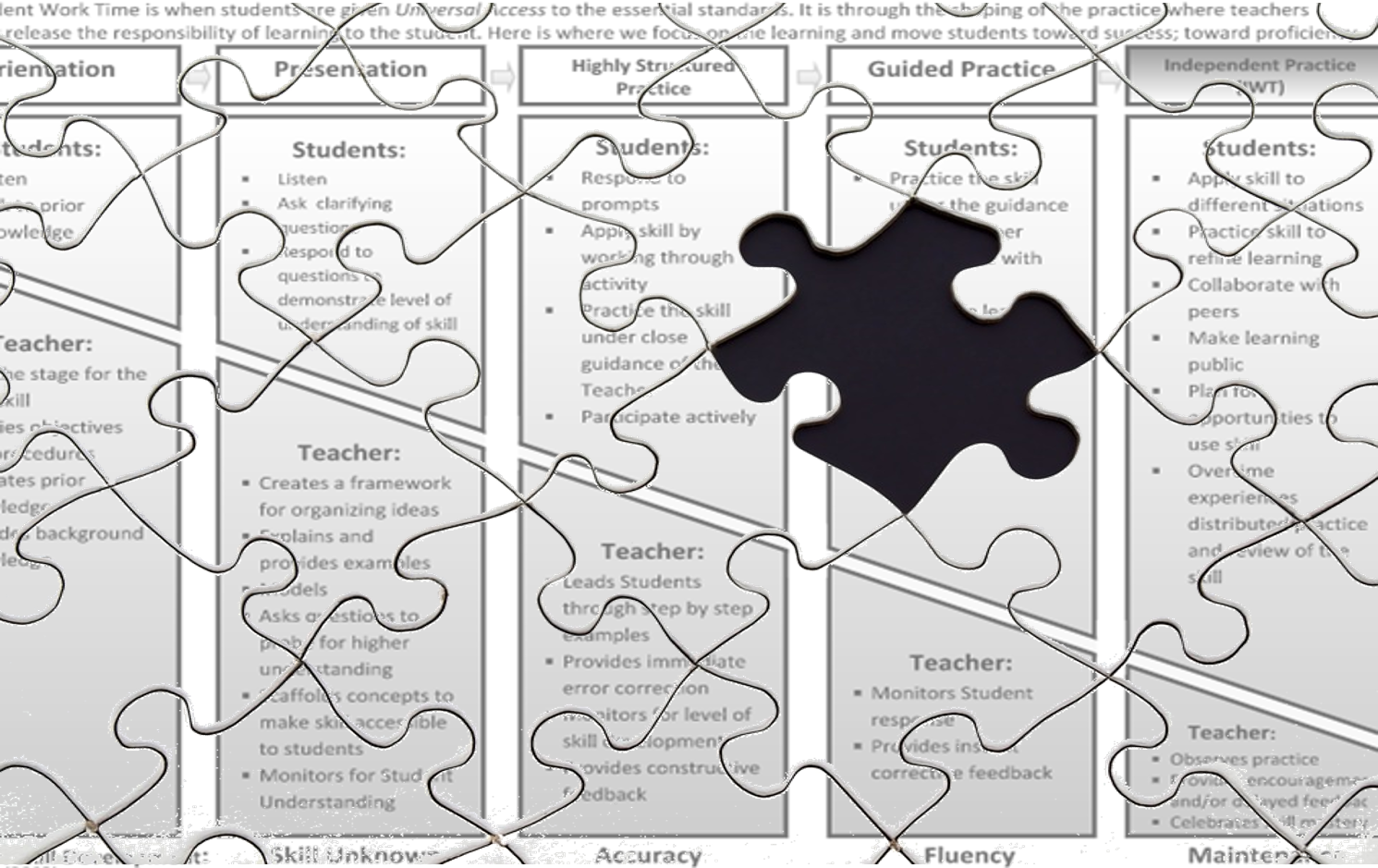 The idea of practice is one of those things that we lose sight of in the classroom. We tend to attribute it to skill and drill, or overlook its effectiveness as an instructional tool. How about taking another look at practice, but in a different way, using Direct Instruction, the Model of Gradual Release, and the Stages of Skill Development. Let’s change the lens from how we used each model separately to now having them coordinate to make explicit the design and implementation of small group instruction and independent practice.